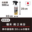 | 1. | 樹木の場合、幹の中間の高さにたっぷり噴霧します。葉や果実にかからないようにしてください。 |