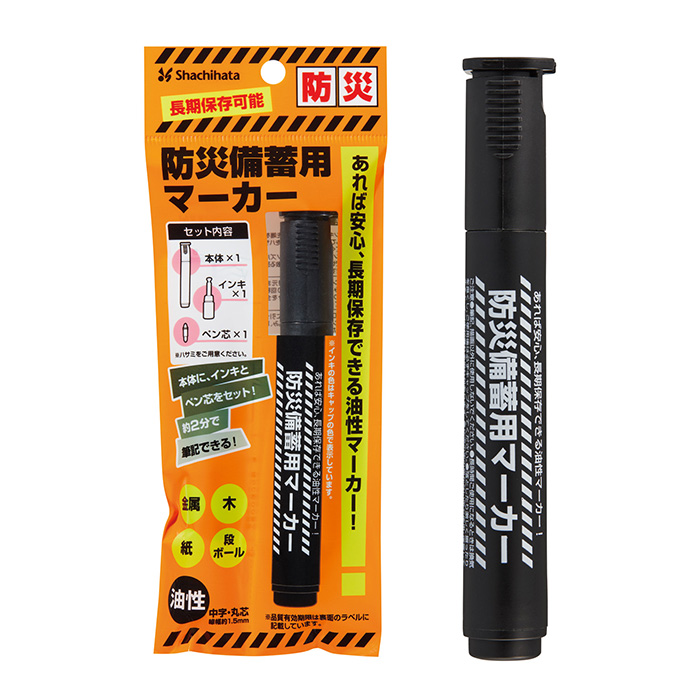 防災備蓄に最適で長期保存可能な油性マーカーです。