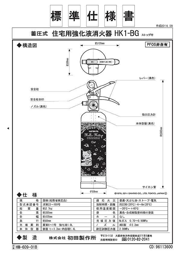 ハツタ ハローキティ住宅用消火器(ブラック:HK1-BG) 蓄圧式 ※リサイクルシール付|防災用品、消火器の通販なら「防災の総合デパート|くらし館」 |