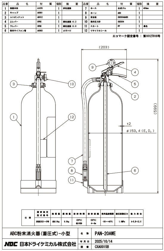 【引き取りセット・10本以上】【2025年製】日本ドライ PAN-20AWE ABC粉末消火器 20型 蓄圧式(アルミ製)※リサイクルシール付|防災用品、消火器の通販なら「防災の総合デパート|くらし館」 |